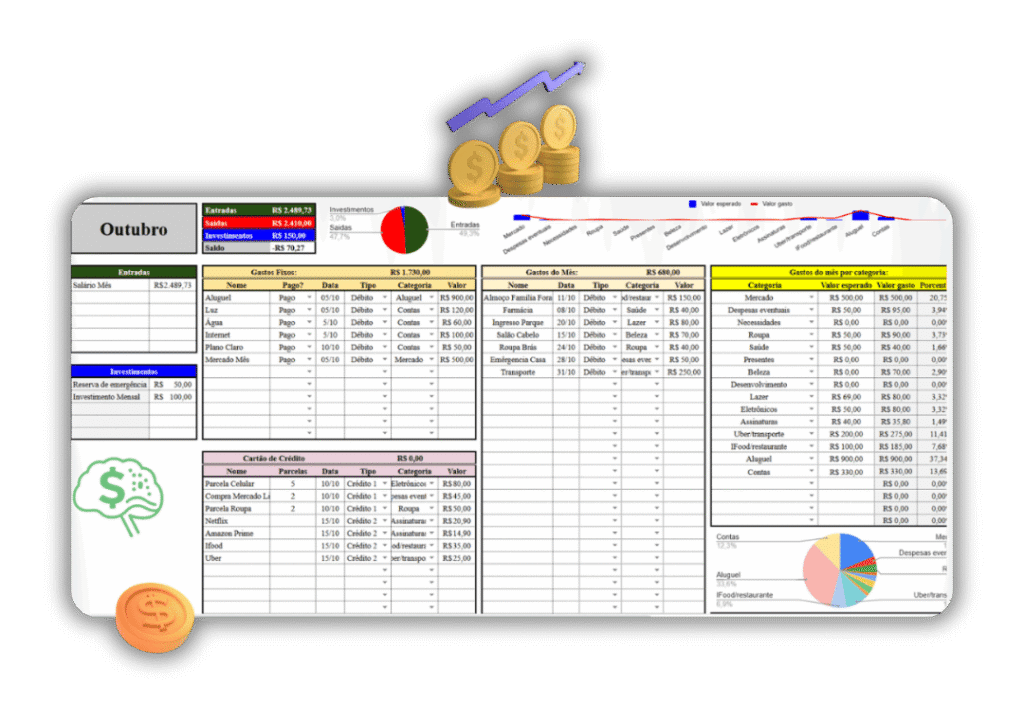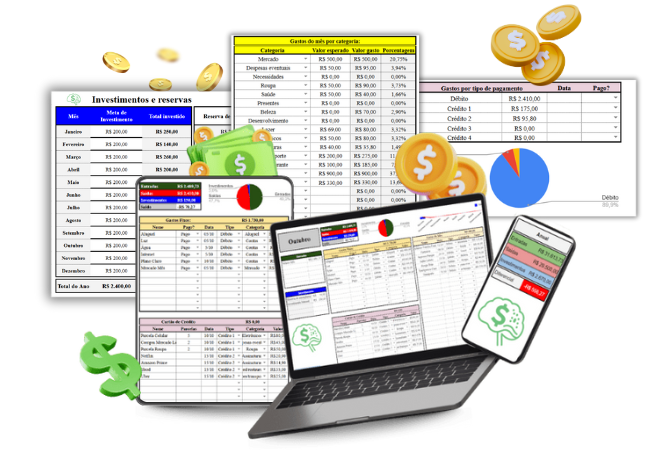 Inclui a planilha completa, o mini-checklist e um mini curso rápido mostrando passo a passo como organizar o mês, cortar desperdícios e começar a investir mesmo ganhando pouco.