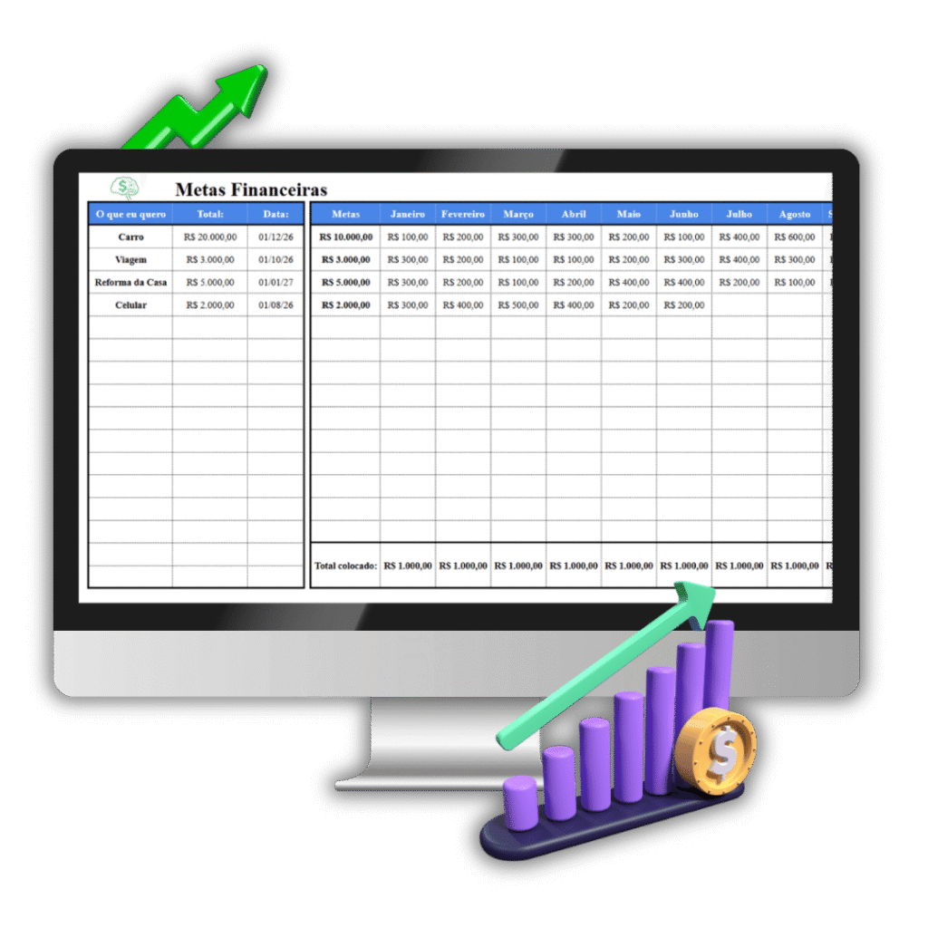 A planilha te mostra o quanto falta, quanto você já avançou e te mantém motivado a continuar.