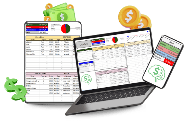 Organize todo o seu dinheiro em um só lugar, descubra para onde cada real está indo e comece a fazer sobrar de R$100 a R$300 por mês com uma planilha simples